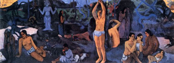 O título da obra: "D'oú venons nous" de Paul Gauguin, pintor francês que viveu entre os anos de 1848-1903, mostra uma oposição cultural entre o conceito cientificista neoclássico europeu, onde: 'Quem somos? De onde viemos? Para onde vamos?' se justificaria exclusivamente na preservação do patrimônio cultural greco-romano em detrimento à culturas consideradas menos evoluídas, no caso 'primitivas', cuja integração ao ambiente e conseqüentemente ao patrimônio natural e ambiental fascinaram alguns artistas desde o final do séc. XVIII. Alguns movimentos artísticos receberão esta influência do culto ao homem natural, também aqui no Brasil. Este foi um dentre tantos questionamentos que nos apontarão os artistas dos séculos XIX e XX. Gauguin vai para o Taiti, abandona a vida cultural em Paris e nos deixa não só uma obra maravilhosa, mas uma história de vida nada comum. E no entanto, seria ingenuidade nos limitarmos a codificar obras de artes, apenas pela história do artista ou da história da sociedade na época da obra.